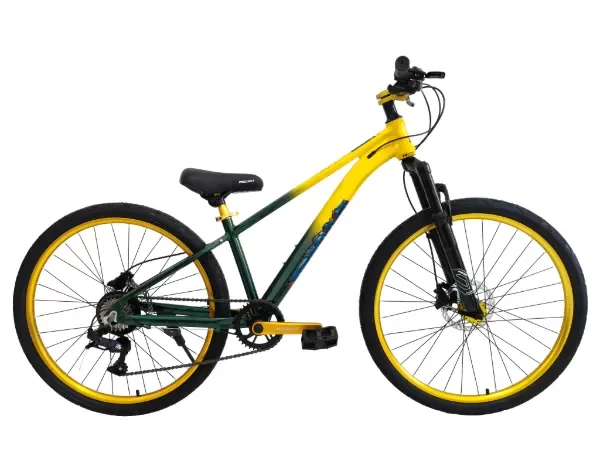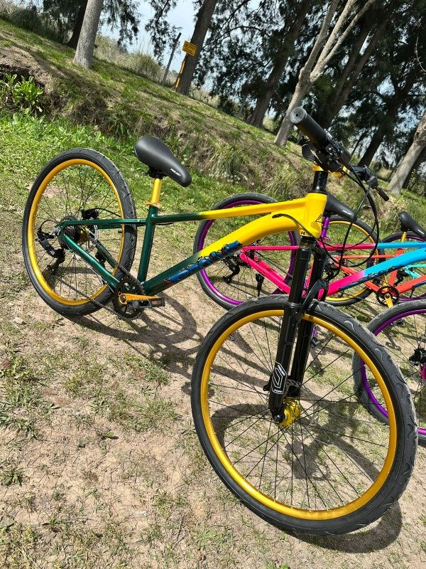 Equipada con frenos a disco hidráulicos, ruedas doble pared y componentes robustos, ofrece buen control y resistencia para aprender con confianza.